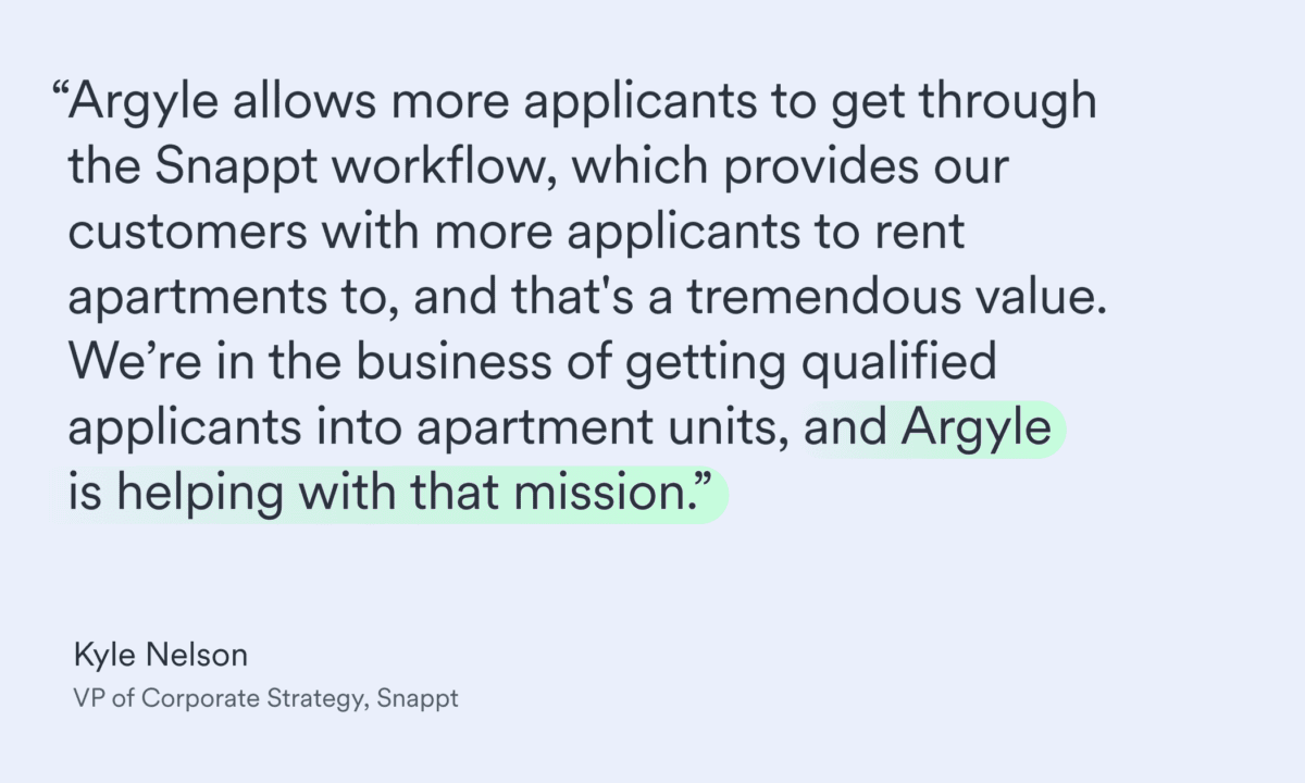 Among applicants who initiate a direct payroll connection via Argyle, Snappt sees over a 50% conversion rate.